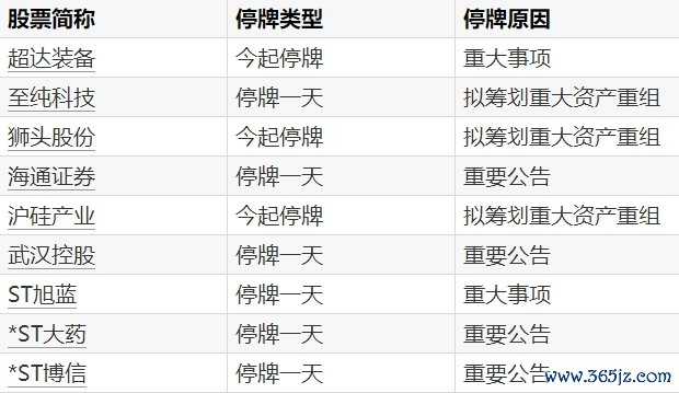 A股停牌提示:9股今日停牌