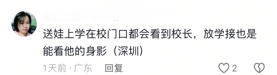 更有深圳本地的家长留言说,其实这样的温暖并不罕见——他们孩子的校长几乎每天也会在校门口迎接、送别学生,这已经成为许多学校的日常风景。