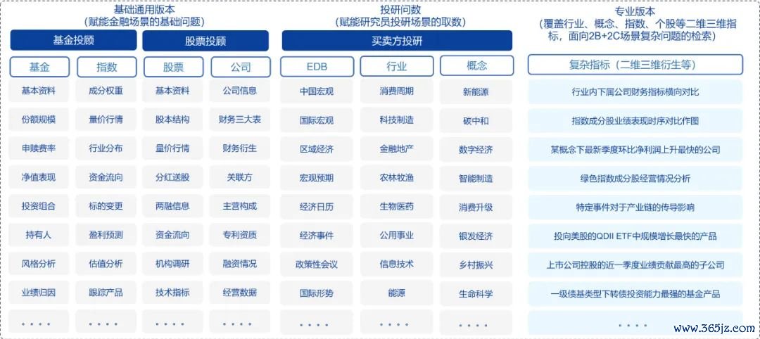 专业版本:覆盖行业、概念、指数、个股等二维三维指标,面向2B+2C场景复杂问题的检索